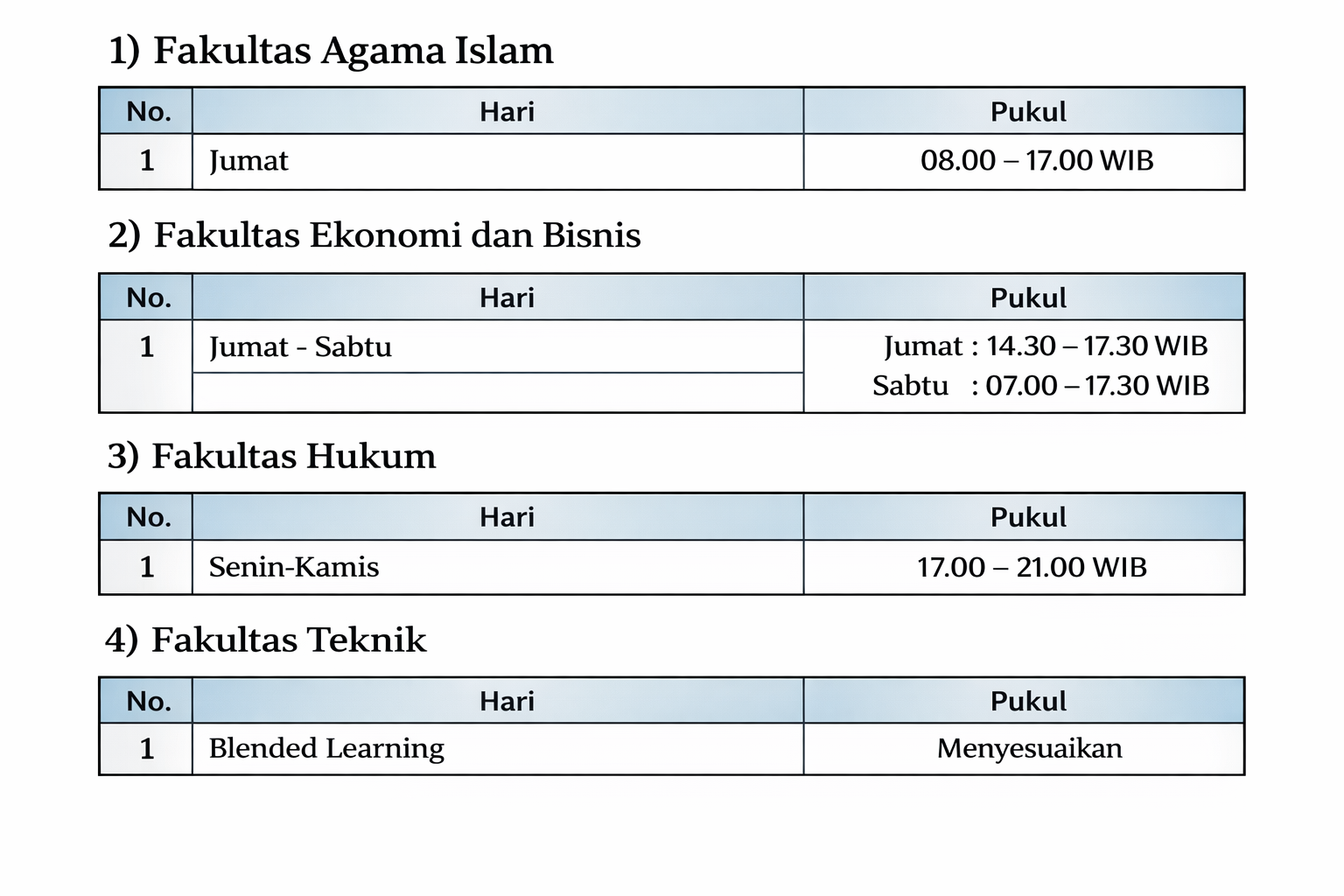 Jadwal Perkuliahan Kelas Nonreguler