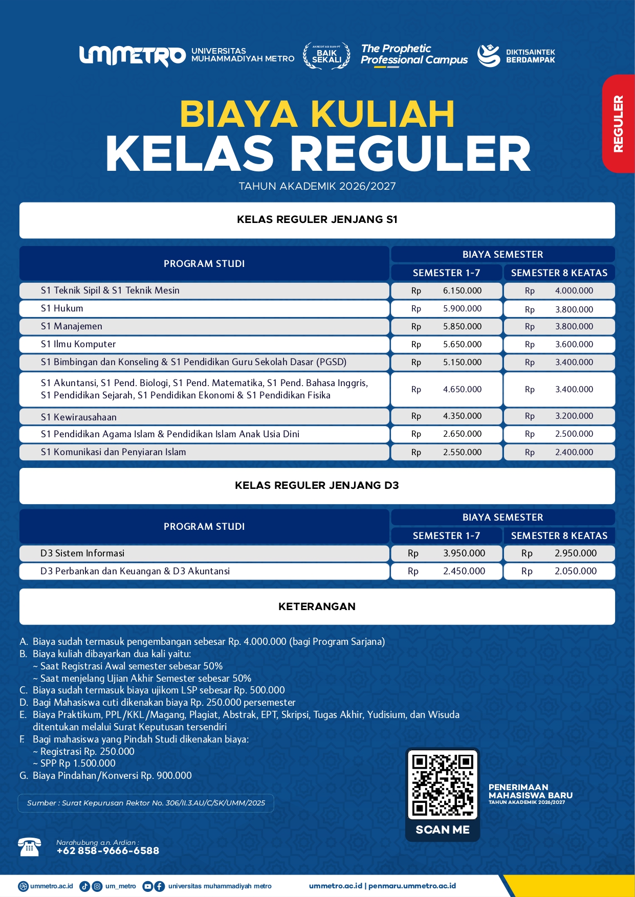 Biaya S1 dan D3 Kelas Reguler